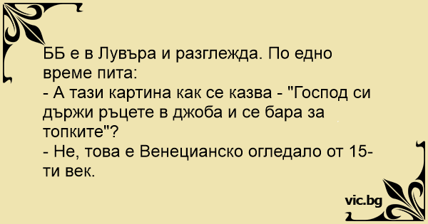 • Вицове от Facebook от нашата страница https://www.facebook.com/www.vic.bg