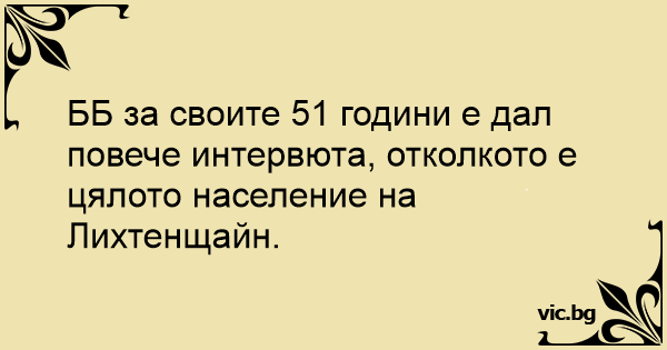 ББ за своите 51 години е дал повече интервюта, отколкото е цялото население на Лихтенщайн.