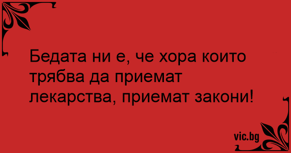Бедата ни е, че хора които трябва да приемат лекарства, приемат закони!