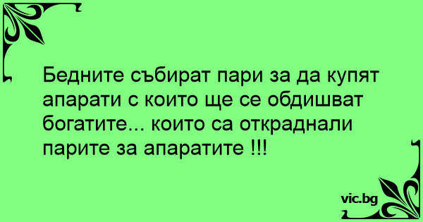 Бедните събират пари за да купят апарати с които ще се обдишват богатите... които са откраднали парите за апаратите !!!