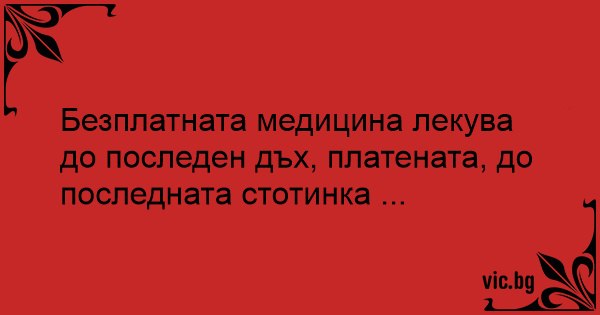 Безплатната медицина лекува до последен дъх, платената, до последната стотинка ...