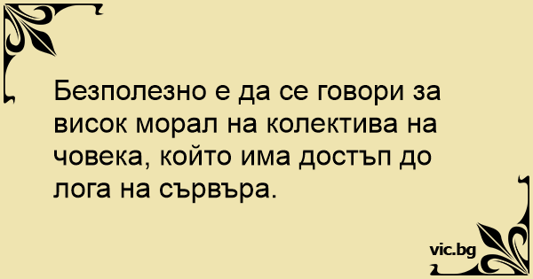 Безполезно е да се говори за висок морал на колектива на човека, който има достъп до лога на сървъра.