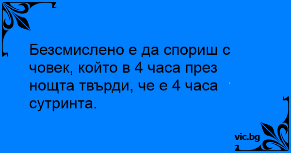 Безсмислено е да спориш с човек, който в 4 часа през нощта твърди, че е 4 часа сутринта.