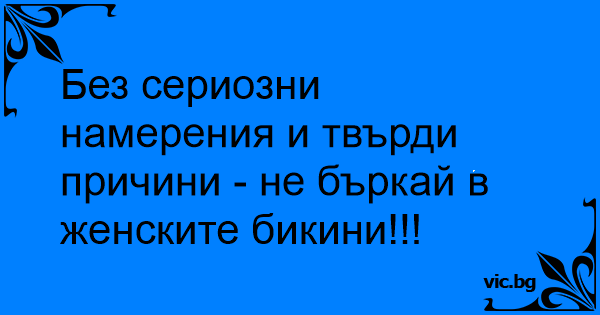 Без сериозни намерения и твърди причини - не бъркай в женските бикини!!!