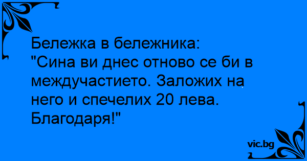 • Вицове от Facebook от нашата страница https://www.facebook.com/www.vic.bg