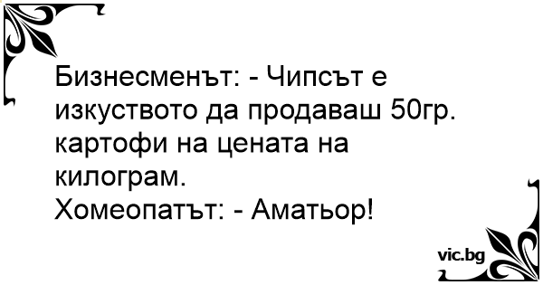 Бизнесменът: - Чипсът е изкуството да продаваш 50гр. картофи на цената на килограм.