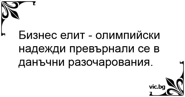 Бизнес елит - олимпийски надежди превърнали се в данъчни разочарования.