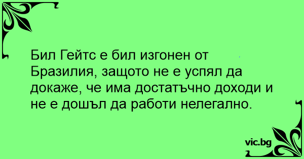 Бил Гейтс е бил изгонен от Бразилия, защото не е успял да докаже, че има достатъчно доходи и не е дошъл да работи нелегално.