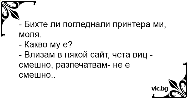 - Влизам в някой сайт, чета виц - смешно, разпечатвам- не е смешно..