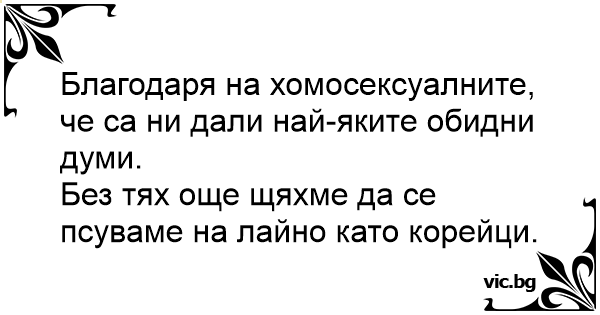 Благодаря на хомосексуалните, че са ни дали най-яките обидни думи.