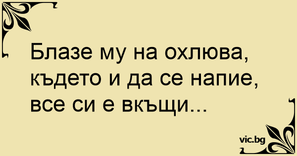 Блазе му на охлюва, където и да се напие, все си е вкъщи...