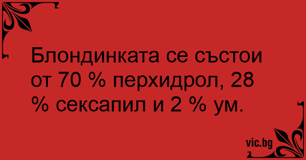 Блондинката се състои от 70 % перхидрол, 28 % сексапил и 2 % ум.
