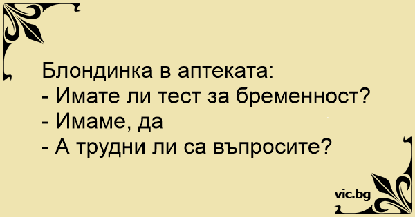 Плавуша во аптека: - Имате ли тест за бременост? - Имаме. - А, тешки ли се прашањата?