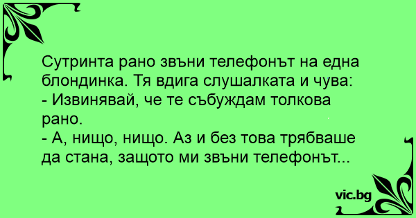 Сутринта рано звъни телефонът на една блондинка. Тя вдига слушалката и чува: