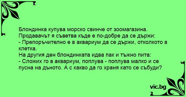 Отива една блондинка в зоомагазин и си купува морско свинче.