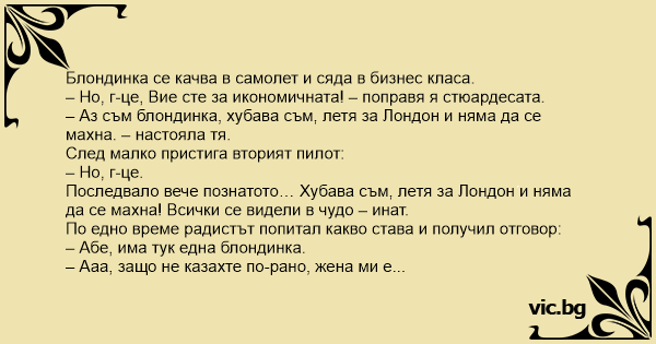– Но, г-це, Вие сте за икономичната! – поправя я стюардесата.