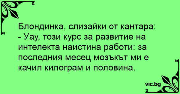 - Уау, този курс за развитие на интелекта наистина работи: за последния месец мозъкът ми е качил килограм и половина.