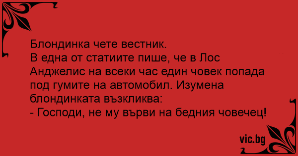 • Вицове от Facebook от нашата страница https://www.facebook.com/www.vic.bg