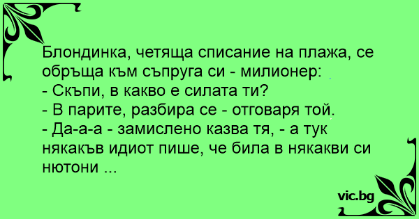 - Да-а-а - замислено казва тя, - а тук някакъв идиot пише, че била в някакви си нютони ...