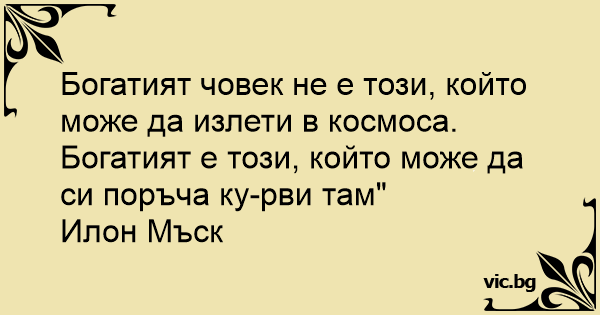 Богатият човек не е този, който може да излети в космоса. Богатият е този, който може да си поръча kуpbи там"