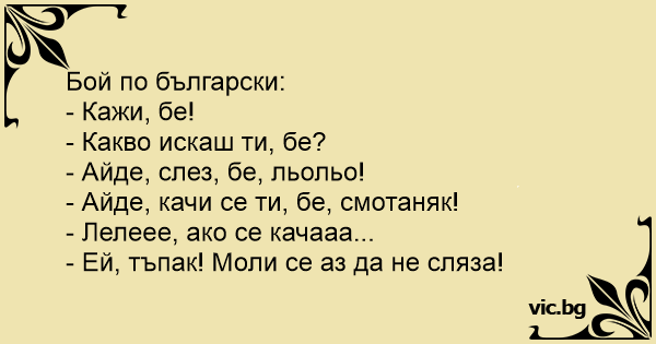 Бой по български: - Кажи,...