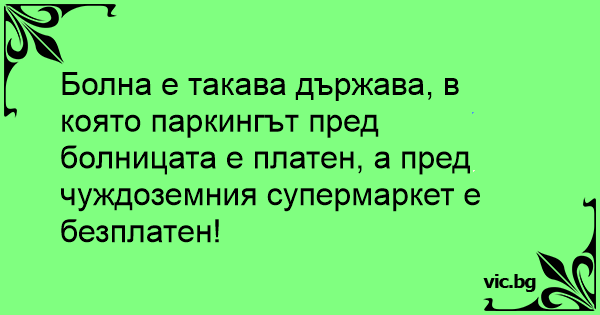 Болна е такава държава, в която паркингът пред болницата е платен, а пред чуждоземния супермаркет е безплатен!