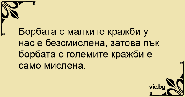 Борбата с малките кражби у нас е безсмислена, затова пък борбата с големите кражби е само мислена.