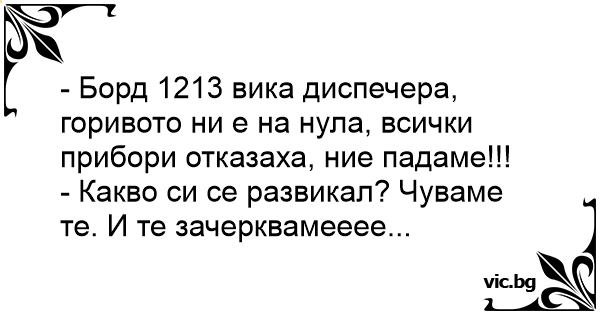 - Борд 1213 вика диспечера, горивото ни е на нула, всички прибори отказаха, ние падаме!!!