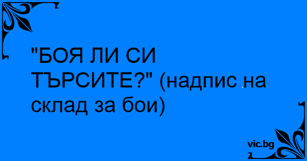 "БОЯ ЛИ СИ ТЪРСИТЕ?" (надпис на склад за бои)