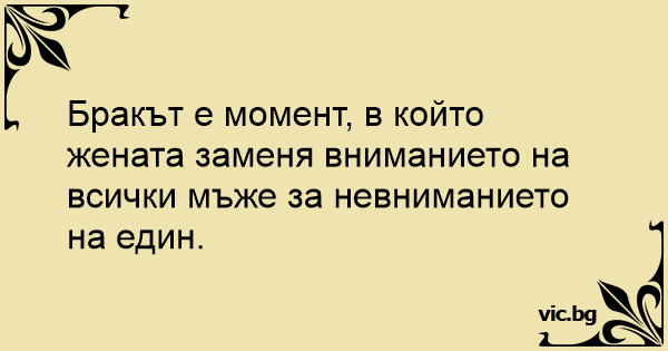 Бракът е момент, в който жената заменя вниманието на всички мъже за невниманието на един.