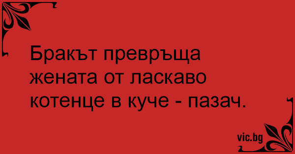 Бракът превръща жената от ласкаво котенце в куче - пазач.