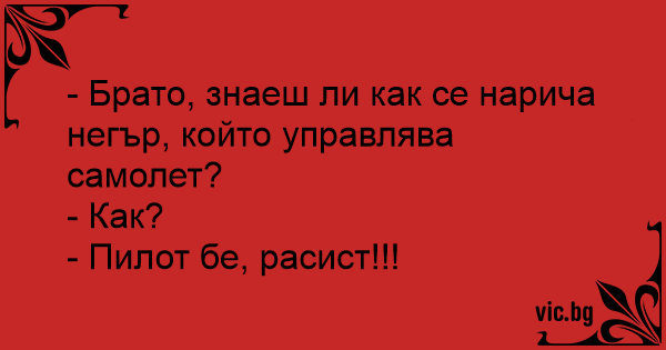 - Брато, знаеш ли как се нарича нeгъp, който управлява самолет?