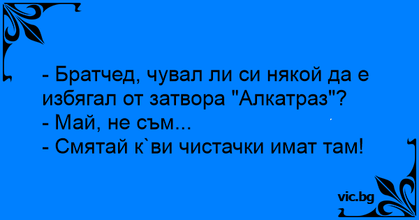 - Братчед, чувал ли си някой да е избягал от затвора "Алкатраз"?