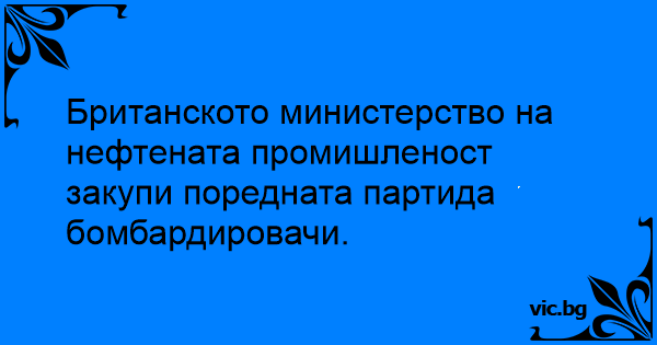 Британското министерство на нефтената промишленост закупи поредната партида бомбардировачи.
