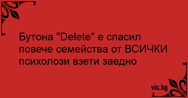 Бутона "Delete" е спасил повече семейства от ВСИЧКИ психолози взети заедно