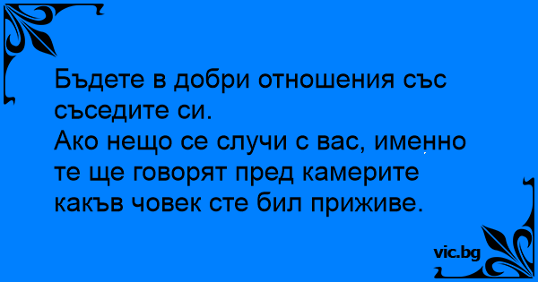 Бъдете в добри отношения със съседите си.