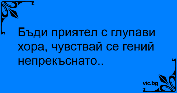 Бъди приятел с глупави хора, чувствай се гений непрекъснато..