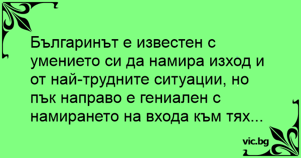 Българинът е известен с умението си да намира изход и от най-трудните ситуации, но пък направо е гениален с намирането на входа към тях...