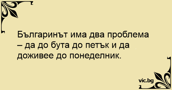 Българинът има два проблема – да до бута до петък и да доживее до понеделник.