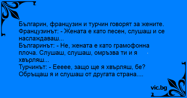 Българин, французин и турчин говорят за жените.
