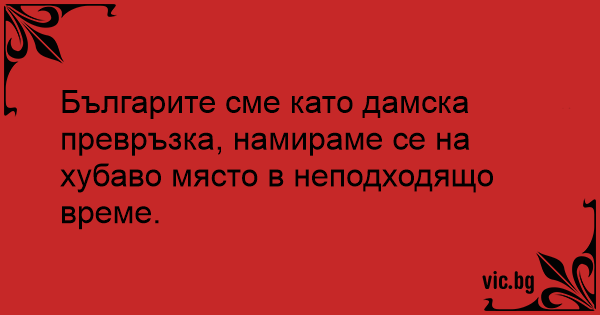 Българите сме като дамска превръзка, намираме се на хубаво място в неподходящо време.