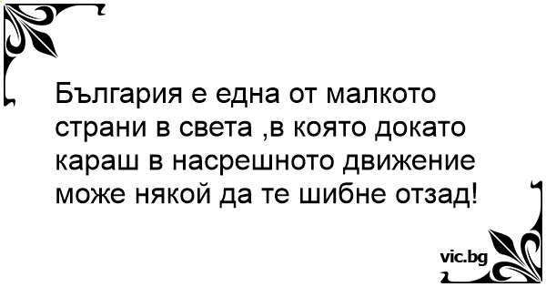 България е една от малкото страни в света ,в която докато караш в насрешното движение може някой да те шибне отзад!