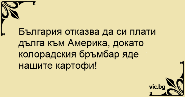България отказва да си плати дълга към Америка, докато колорадския бръмбар яде нашите картофи!