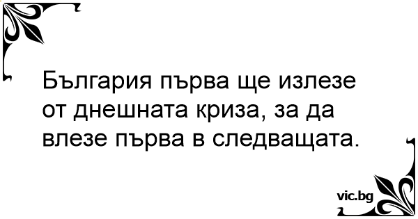 България първа ще излезе от днешната криза, за да влезе първа в следващата.