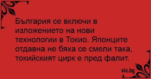 България се включи в изложението на нови технологии в Токио. Японците отдавна не бяха се смели така, токийският цирк е пред фалит.