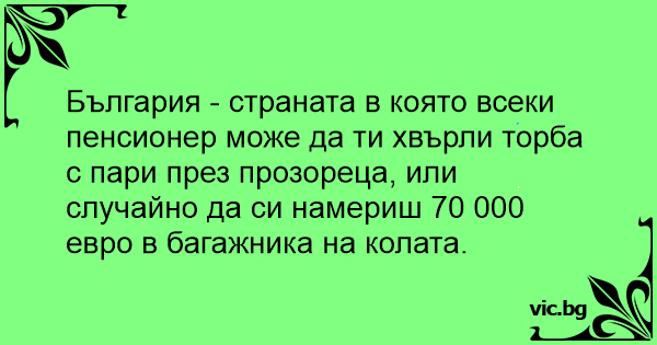 България - страната в която всеки пенсионер може да ти хвърли торба с пари през прозореца, или случайно да си намериш 70 000 евро в багажника на колата.
