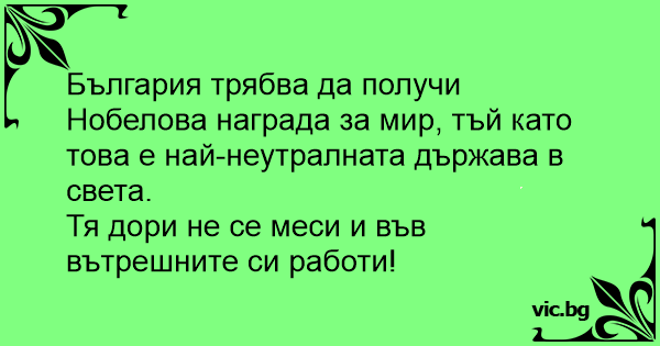 България трябва да получи Нобелова награда за мир, тъй като това е най-неутралната държава в света.
