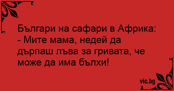 - Мите мама, недей да дърпаш лъва за гривата, че може да има бълхи!