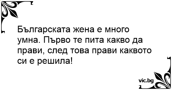 Българската жена е много умна. Първо те пита какво да прави, след това прави каквото си е решила!