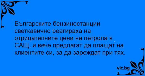Българските бензиностанции светкавично реагираха на отрицателните цени на петрола в САЩ, и вече предлагат да плащат на клиентите си, за да зареждат при тях.